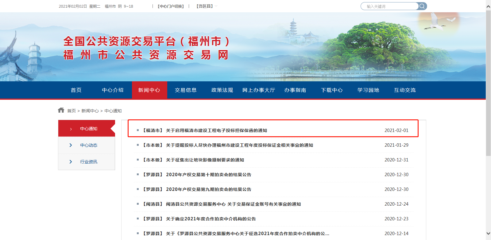 福建省福清市电子投标保函服务平台于2021年2月1日正式启用电子担保保函,福清市建设工程项目即日起可使用电子担保保函缴纳保证金,投标人可在线登录以下福清市电子投标保函服务平台申请电子担保担保保函: