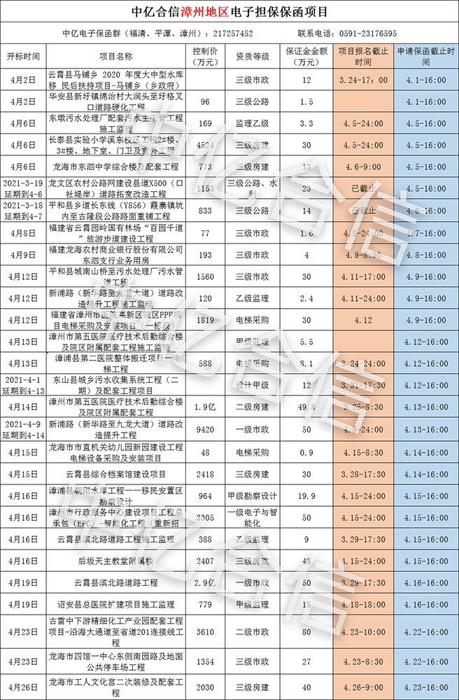 截止目前福建平潭、福清、漳州三地最新项目汇总表,快速出函,小e助您投标更轻松!